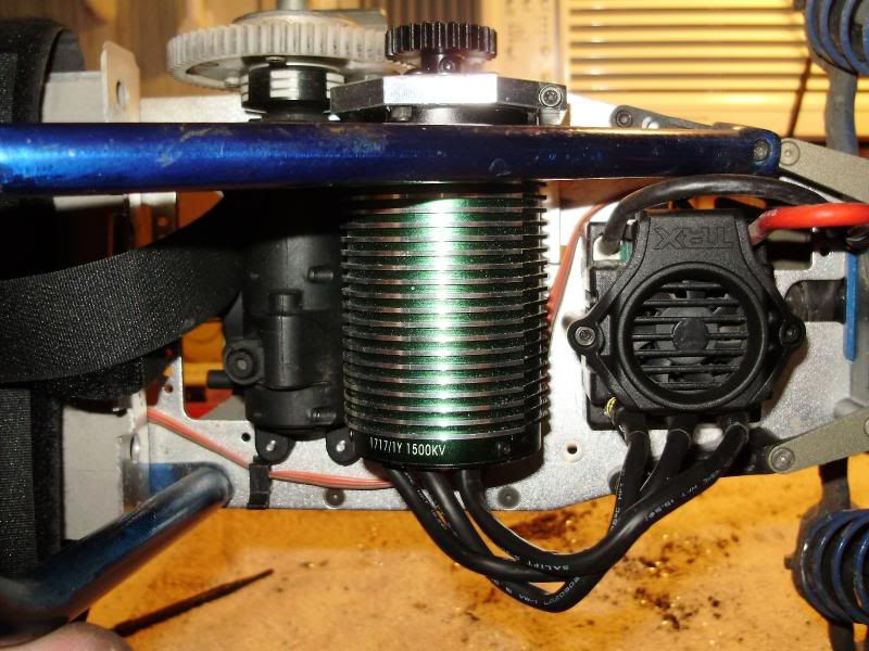 Received my 5mm rotor last week and got around to doing the install last night and today. I drilled the 3mm Dude mount out to 11/64 and the motor bolted right up no probs. My diffs were recently rebuilt with Nova cups and Muggy gearing so I need to crack them back open and swap out the ring and pinion back to LST. I replacd the gear that gets the most punishment in the tranny and did the gear swap for the higher final ratio while I was in there.