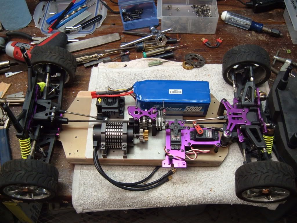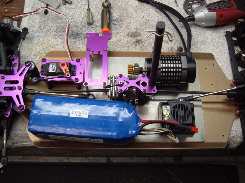 Waiting on gears so I can mock up the motor clamps and drill holes for them. Will make a battery tray and trim the brake servo plate as my bandsaw tires just arrived (yay). Need to wire up the MMM and make a mount for the receiver, pretty sure I will put it next to the steering servo. Then I get to attemot to remember how to program the M11 to slave the brake servo on ch4... Sounds like alot of fun.