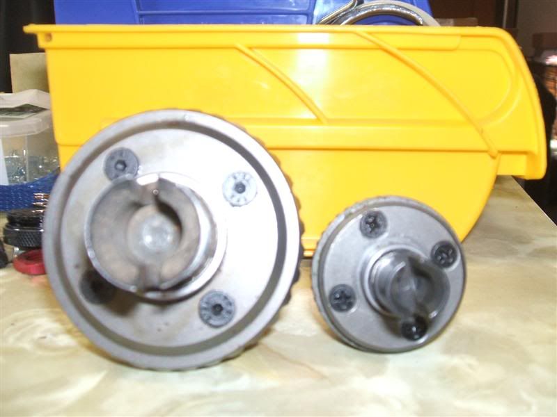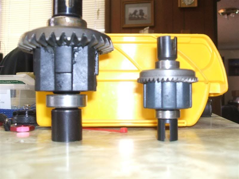 Had the differential out to replace a drive cup and thought I would post of pic of the 1/5th differential next to a Kyosho STRR 1/8th differential I had laying around.