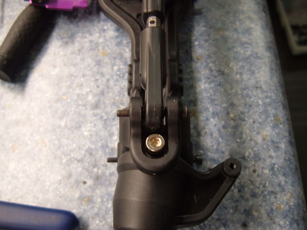 Note the small spaces on either side of the upper arm, this is where the washers need to go: