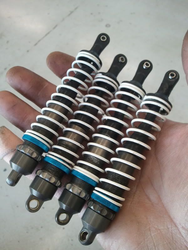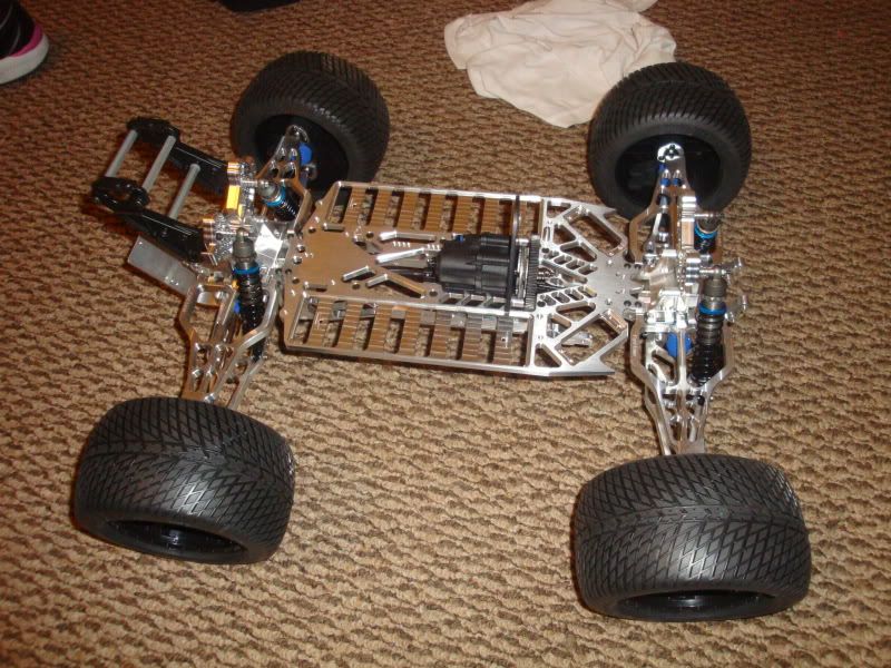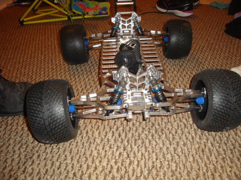 I finally bought some UE supershocks off ebay, traxxas black toe links and a Ofna black high downforce wing for it. Might buy my body this weekend so that i can get creative.