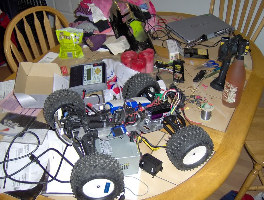 I got the truck strung together for a beta test run. It runs good for about 20ft then it hits the binders automatically. I think it's the radio, but I'm not sure yet. I don't have everything in their exact location yet, everything is just laying on the chassis. What do you guys think?