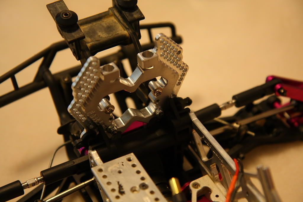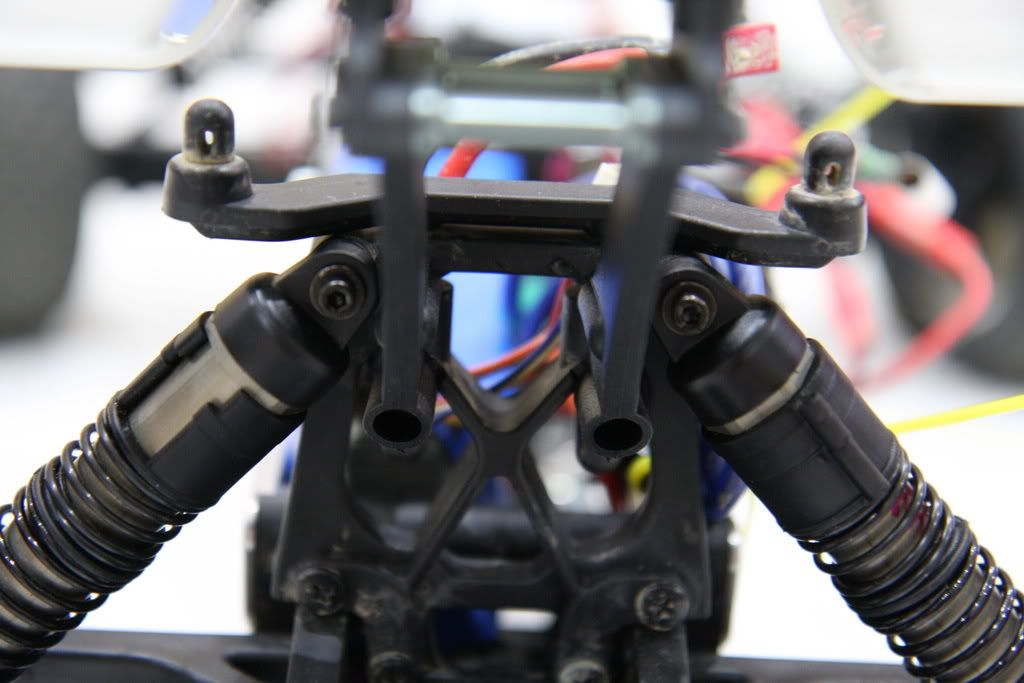 shock tower with integrated mountng holes for a wing ! This is an FLM part which I didn't even know existed. Use HB lightning wing mounts.