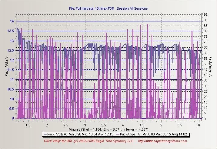 The puases are me checking the onboard temp guage I repositioned it and cant see it through the body now. The temp climed to 114.7 after I powered down. ESC temps peaked at around 140f
