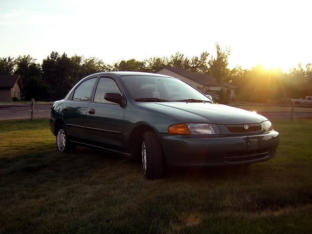 Old pic (I ditched those stupid hubcaps and got alloys), but the best I've got. KYB GR-2 struts, HD clutch and pressure plate, Bosch cap rotor and wires, NGK Iridium IX plugs, and K&N filter (not cold air, just one of the ones that fits in the stock box). Totally gutless and despite the big improvement in handling by going to the KYB struts it still doesn't handle nearly as well as the Mustang, but 40+ MPG in the Summer and it gets me anywhere I need to go.
