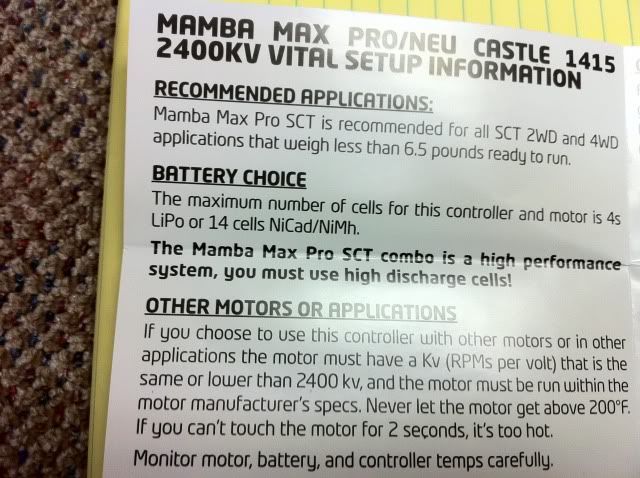 So far its the same software in the MMP SC as the MMP just a new sticker (updated to the latest firmware;). I plugged in 6s and it beeped 6 times, it looked liked it armed but I didn't have it installed into anything to run it. Why the new motor Kv and 4s limit on the MMP SC combo? TRX NOOBs? The max motor rpm on the can is 75,000. Here is a pic of the 1415(top) besides a 1515.