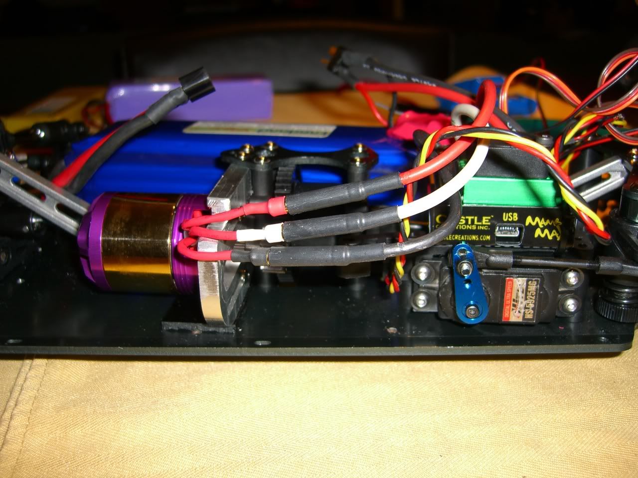 Here are a few pictures of my latest project. Its a Cen Matrix that I am going to try a Cyclon outrunner motor in. The motor is a Cyclon 2000. W/ a Mamba Max on 5s Lipo. I have been thinkig about these motors for a long time and I found a deal I couldnt pass up so I figured what the heck should be a pretty nice application for it. The mamba maxx seems to run it pretty nicly. Although I have not had it ooked to the drivetrain yet. Just spinning freely to test the system out.