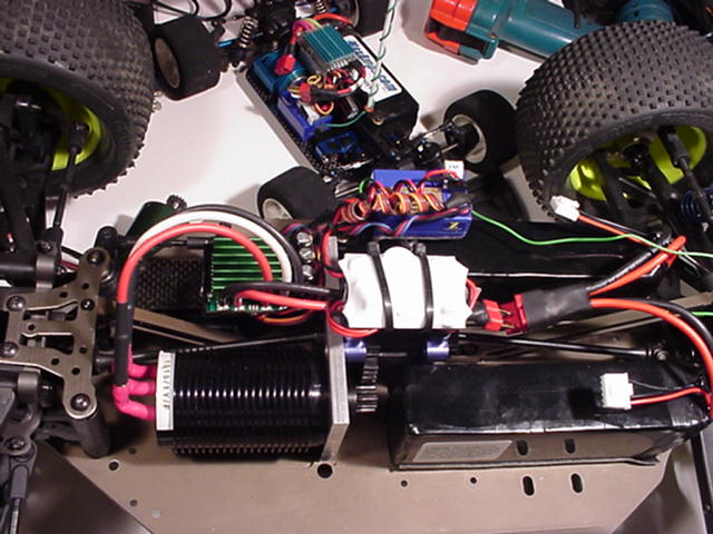 Mounting the motor is easy in the CRT I found a peice of 1/4" aluminum in the garage that worked great I drilled and sloted it for the motor and bolted it to the diff mounts in the brake pad holes and 4 bolts up from the bottom of the chassis. :027: