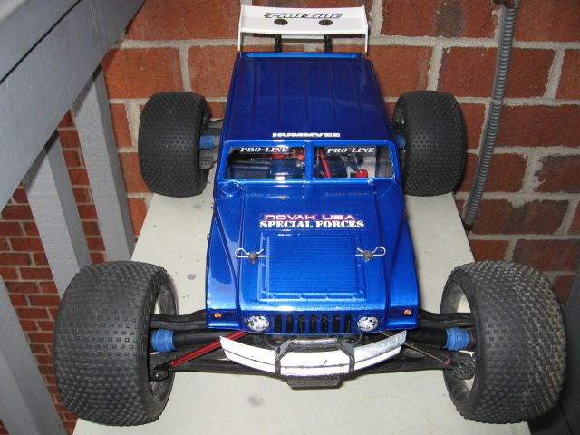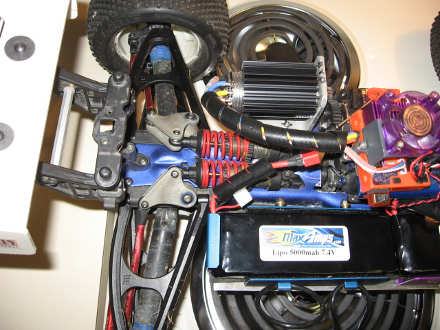 just switched to 300k in the center diff, seemed to help some but i think im going to put heavy fluid in front, like 50k (30k now) and get some new hpi road tires, now i got proline cf and they are not belted so that could be a big part of the problem, but anyway just ran it with charged packs and the lvc kicked in at like ten minutes of running, mainly speed runs in short grass, not the best runtime but once i get another set of batterys itll be ok, id say its in the 30 mph range easy maybe more, so far i am pretty impresed with this set up, but then again ive never witnessed high end , plus i have not driven it since thanksgiving so happy to be running