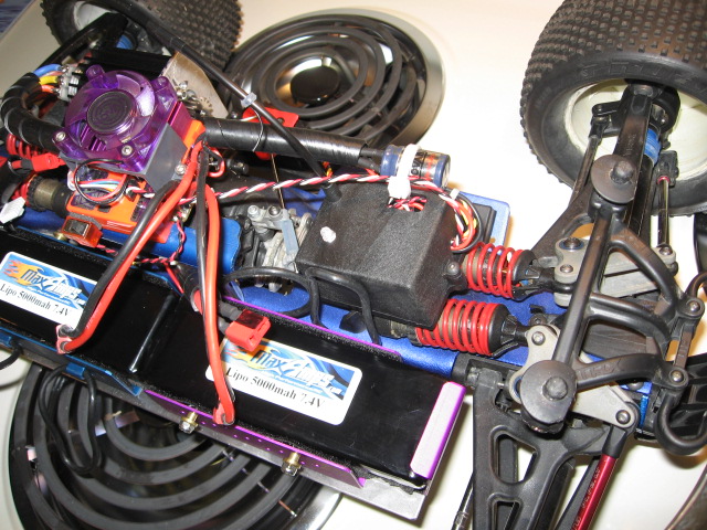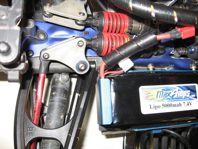 packs are in , went for a spin and it was pretty good, took out the throttle splitter and went with servo mixing so channel three is brake only , any way a few problems, it diffs out the front bad, may need thicker fluid up front, and in diff, or back to no center diff will test more, novak lipo lvc worked good except it cut off and i came in and the packs were at 7.4 each(started at 7.65 didnt charge to begin with) so i switched the splitter and set up the 3rd channel , and went back out because the voltage looked good, ran for 5 more minutes and cut off again, this time one pack(the one with the 4s lvc) was at 5.9 ouch, and the other was at 6.7 so that sucks but im charging the lowest one right now and its going good, charging thru the balancer @ 4amps seems to be charging great (thought id charge at a lower amp till i now im doing it right) but now im going to lower shift point a little and test more tomorrow, but im pretty excited, ive wrote more than usually