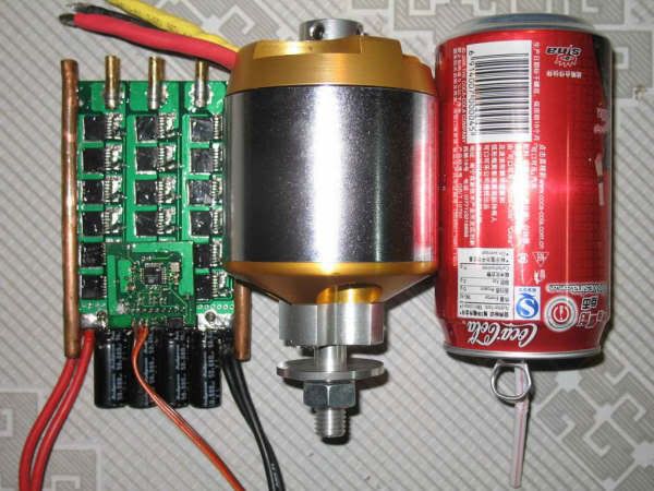 Kind of hard to resist combining the two hobbies since I've dabbled quite a bit in both.. here's some pics of the brushless motor/controller I'm using in my fastest pocket bike now. As well.. here's a modified version of the $45 controller running at a slightly higher voltage..