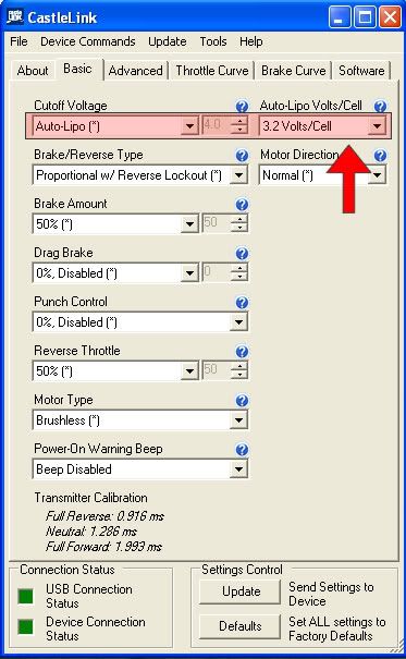 plane ESC's are fixed to 3V/cell or sometimes less.