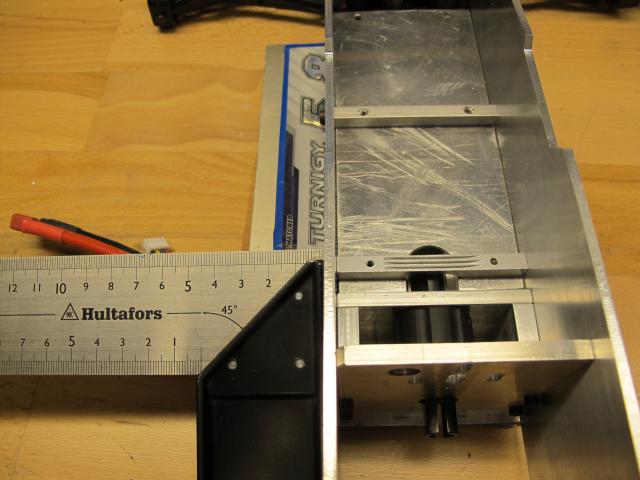 The batteries will rest against the U-shaped alu part in the center line... which will protect dogbone from bats or is it the other way round? 10T pinion fitted on the motor :)