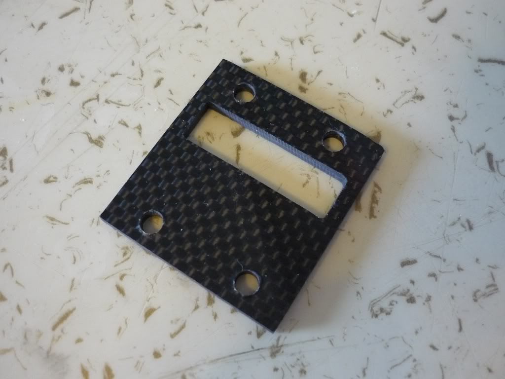 I made a CF center diff spacer today, which is needed because the diff is flipped around. It covers the stock spur clearance hole, and allows clearance for the spur on the opposite side. It raises the center diff by 3mm.