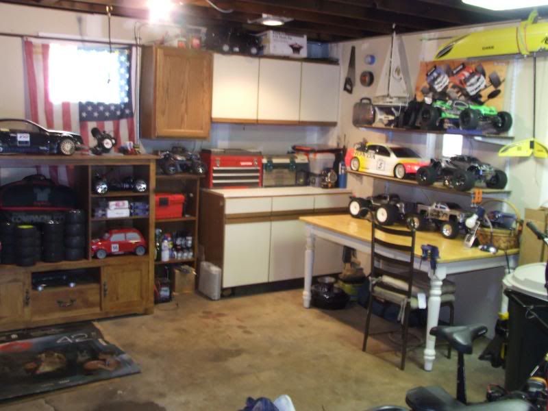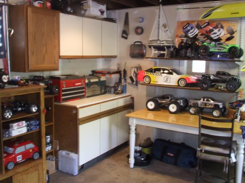 haha yeah took the old junky entertainment center for RC use, I was going to make a ramp out of it but it found another use. Only problem with a clean garage/workspace is now my wife knows how many RCs I have. I had 'em spreaad all over the place so you couldnt get a real count lol