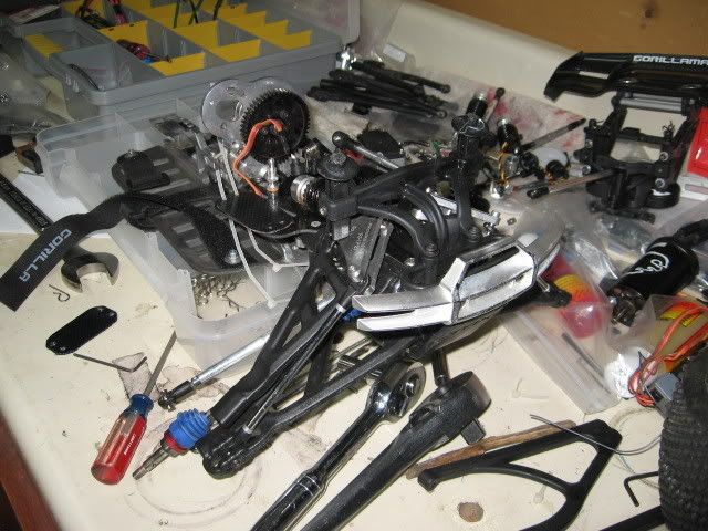 Yea I think that I am goin to have the same problems with my boys once they get into the hobby. Kids love to see things getting mangled and trashed, because they do not yet understand how much a crash like that costs $$$$ and what it takes to acquire that money. We have to teach them to keep things under control. Even pushing the limits has to have limits when your wallet is involved. Personally I like the look of the carbon fiber gear, but it is truly no match for the stronger aluminum or titanium counter parts. If you are going to continues to bash at that level you have to build for that purpose, or you are going to end up spending a lot of money on replacement parts. Your truck does have an awsome look to it, but you still have a lot of weak plastic parts on it, and with your learning curve you are going to end up spending an aweful lot of money buying more plastic parts to keep it up and running. It may take a little bit longer to build and the end weight may be heavier than you wish, but in the long run it will hold up better and you will have more time actually driving it instead of repairing it. With the level of your electronics they should have no problem pushing a little added weight in trade for a stronger vehicle. Keep up the good work. It is good for a lot of newbies to see what happens in the material choices that you make in your build.