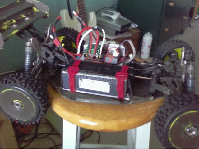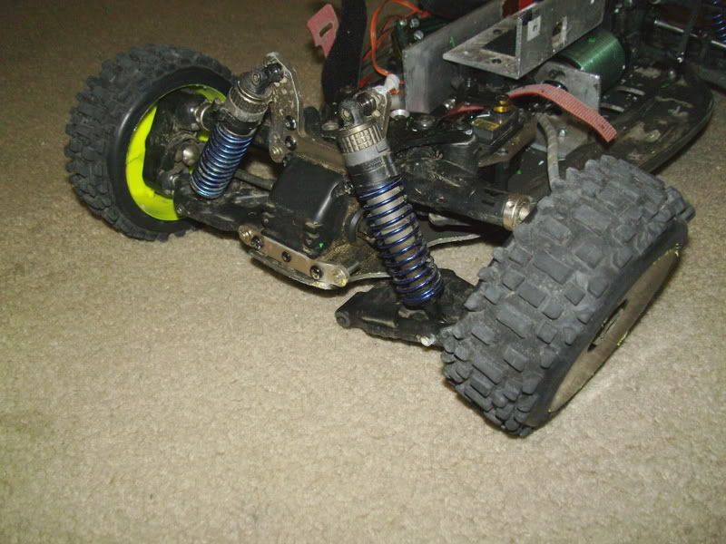 nice the upgrade from my 8l to the mmm 2650 was well worth it. the thing flies! anyways, i removed the treads from the "faglands"(the fake badlands i got of which the rims all broke) and put em on whatever rims come with the losi 8ight 2.0. i also got my car rigged back up with the ol' MM with motor directly soldered to it. at least i can run now til my mmm comes(btw its shipped!!!!!!!)