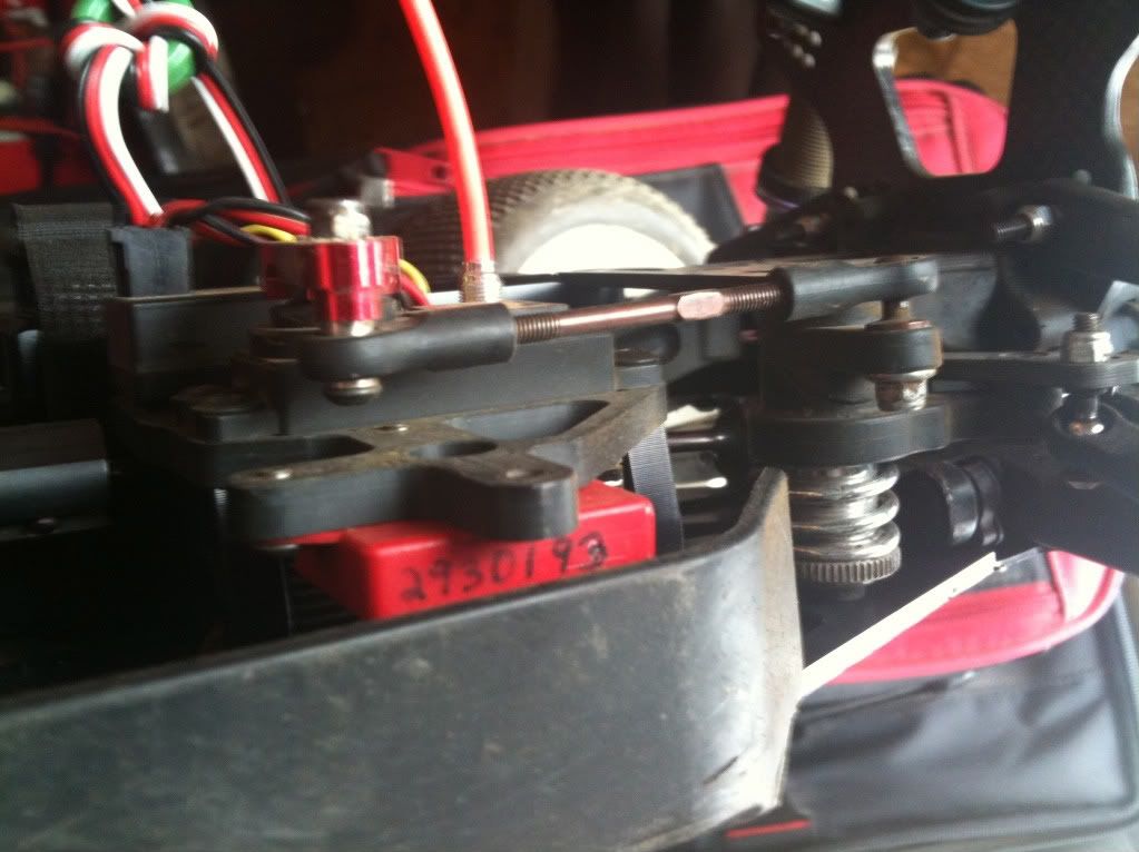 "Mike should have included a couple 3mm flat nuts in the package. take one of those nuts and thread it all the way onto the threads of the ball stud so its up against the flange on the ball stud. Then when you put the stud through the servo saver arm it will fill the gap that was intended for the nut when the linkage is installed on the bottom of the arm."