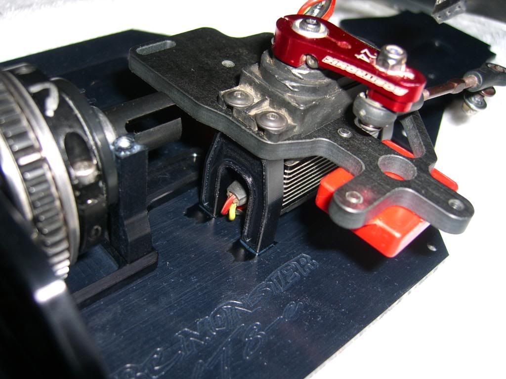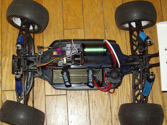 The chassis comes pre-drilled for the CC Mamba Monster ESC and Tekin RX8. You have to purchase the eRevo mount to utilize this option for the Monster. I originally had mine mounted this way, but I found it easier to velcro and face the servo connecting wire and battery connector towards the battery tray. This gave me a little extra wire on both connectors to reach the receiver and battery.