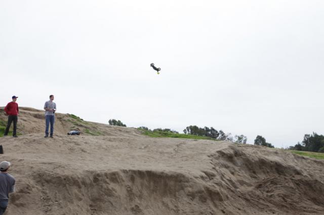 I was definitely one of the best bashes we had so far. The spot is perfect. Good firm dirt, not a lot of rocks, great terrain features, and the big jump was a monster! I really hope the vids and pics came out well.