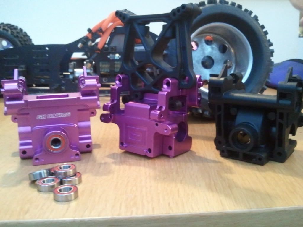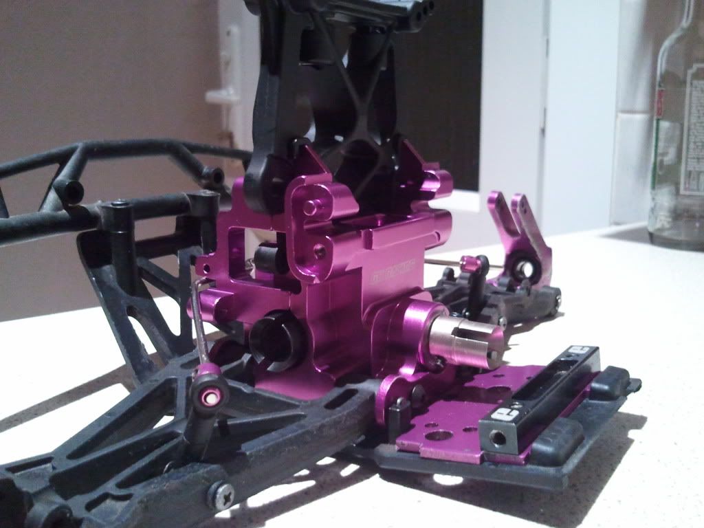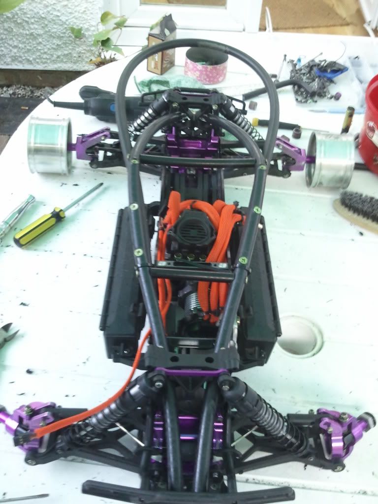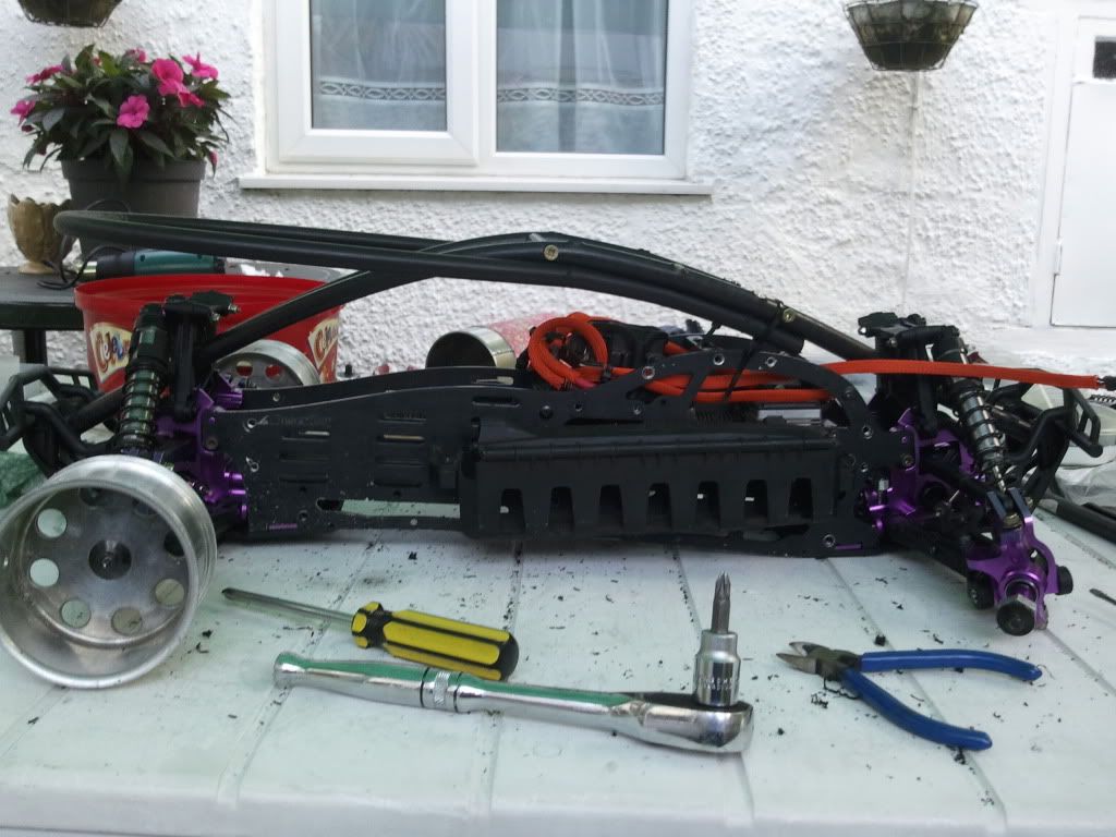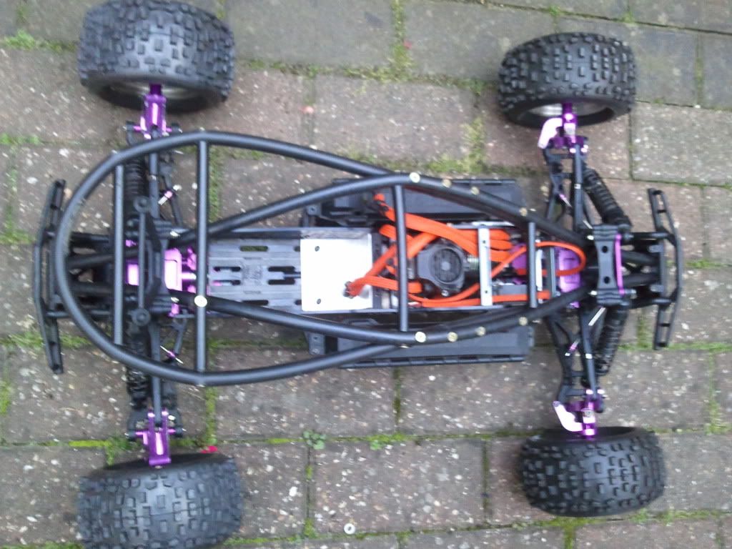 Ok ive been working on getting the truck into one piece this weekend... It has been apart for so long. The centre diff is complete, and i have put the lipo boxes on as i am prepping for 9s... And also made a start on my own custom nylon roll cage... Its not completed yet as i still have to make the front shock tower protection and after thats completed, i will be setting the camber and shimming my axles and other little things like meshing the motor and CD....