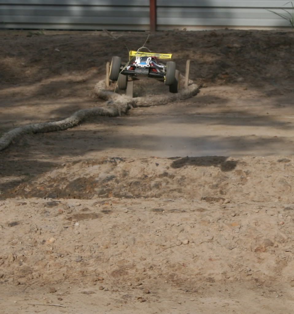 Just thought I'd post some bashing pics. The rain has passed & the guys are starting to warm up to nitro bashing around this homemade track. there will be a race on the 1st of May, the first for this year. We had a lot of fun :