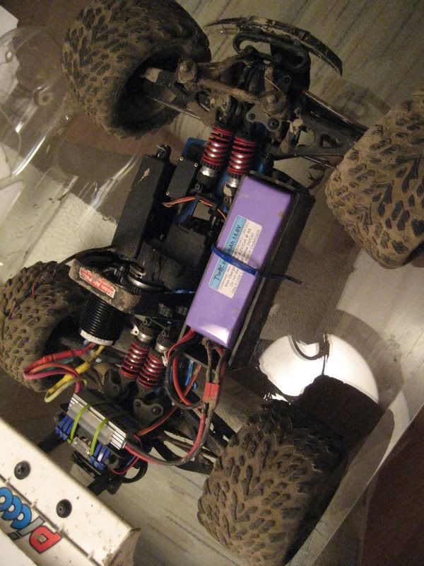 Finally 1 of my batteries came in and I got to do my first lipo run. It was pretty sweet. It put most my doubts about brushless to rest. It ran very hard and quick. I only got about 15min, of runtime in when the slipper loosened up and shut me down. It was dark already so I put her away. I'm very curious on how long my runtimes will be.