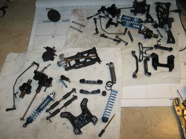 Next I need to strip it all the way down and change the oil in the front and rear diffs to 5,000 and use 30,000 in the centers. I already ordered the complete set of front and rear shocks off the 808 for this buggy (should have them next week).. I’ll also need to check the and probably replace the bearings as well..