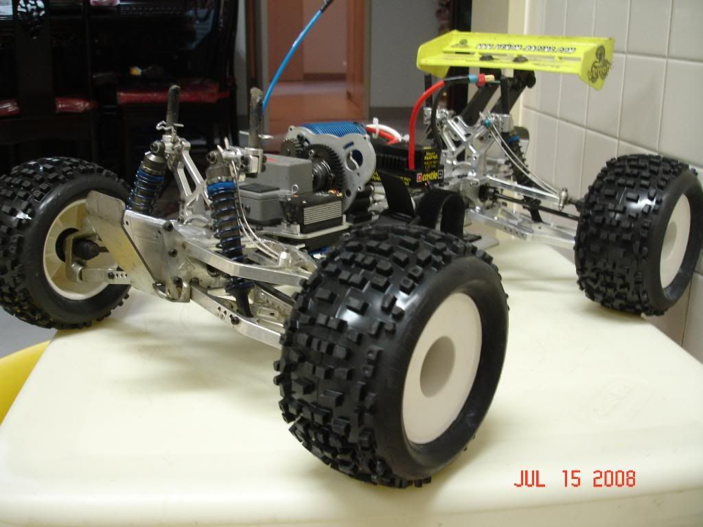 I did the whole buggy shock thing on my MGT and I didnt really think it was worth it. I ran 8 turmoil shocks on it and it was nice but not worth the $90 it cost. I say just get stiffer springs and big bore caps for them.