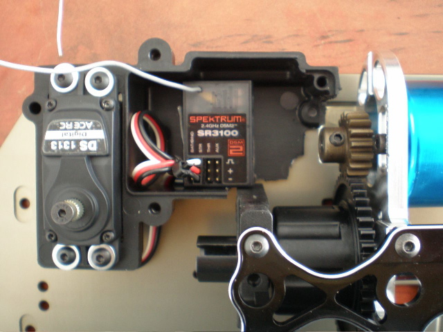 You can see were i cut if in the pic , then all that was left to do was attach the steering servo and put a couple of notches in the battery box lid to allow for the receiver antenna and future esc wiring to go through.