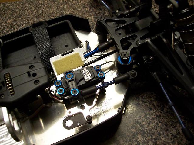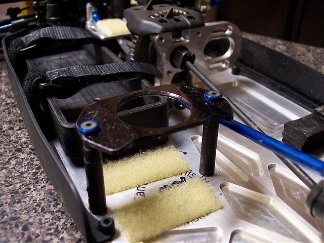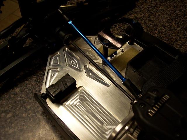 i made the MMM mount thats behind the battery tray, its .080 6061 t4 alumnium with a rasied center to keep the MMM clamped and inplace on my velcro, it has a 1.125 inch hole in it for the fan and i sanded it and then colored it with a black sharpie a few times to get the anodized look lol