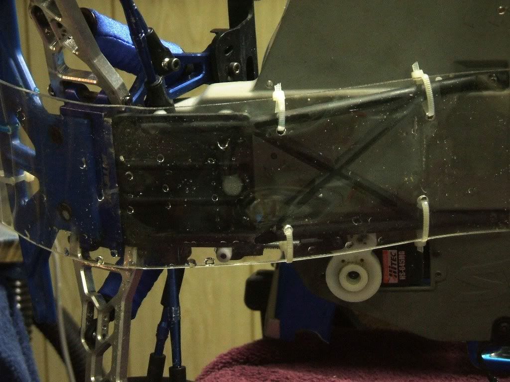 So far, I've used the bottom half of the rear wheel well cut-outs including about 1/4" of the flange as rear arm debris guards on the e-revo and for the slash, I ended up trimming the front and rear clips to fit upside-down encompassing the inner tub of the slash. I cut a notch in the rear for the motor wires to pass through.