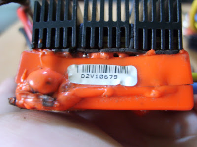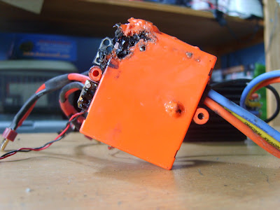 so when i go over to it the fire was put out during flight unplugged batteries and saw a great big burnt mark around the shell/chassis/speedo.