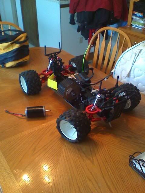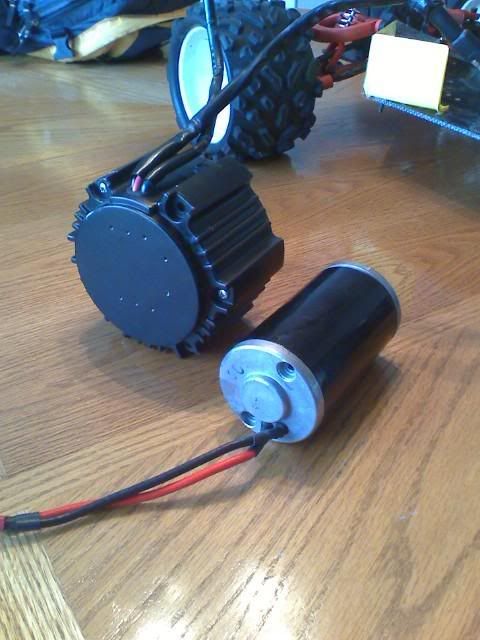 Picked up a Kollmorgen 400 brushless motor for my 1/5 yesterday. Its absolutely monsterous compared to the CIM robotics brushed motor and hopefully will displace even more raw power. Its so wide that I will have to make a custom plate that will have to hang off the chassis to be able to mount the other side of the motor.