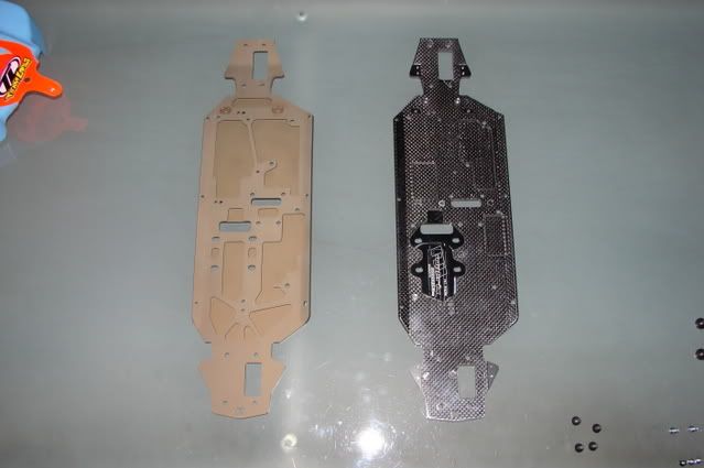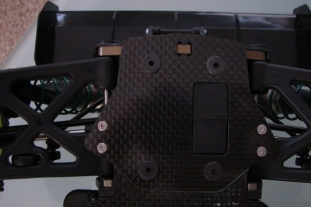 afew weeks ago i picked up a matrix carbon fiber chassis, carbon fiber steering drag link set and carbon fiber front and rear shock towers for my lite weight losi 8ight project. Over all the fitment is good, the rear outer hinge brace hole needed alittle sanding to fit and the counter sinking on the replaceable front skid plate could have been deeper
