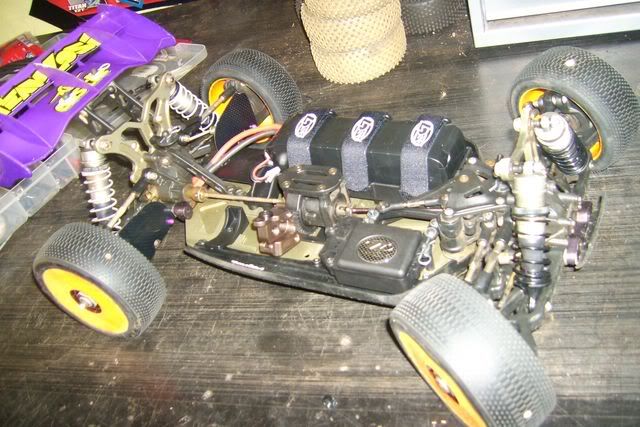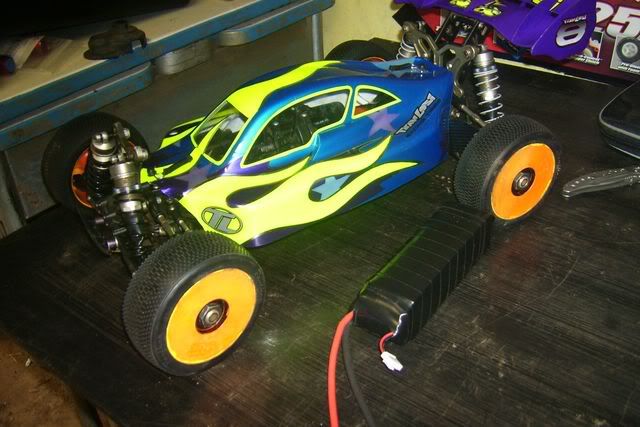 Traded some stuff for this buggy and got a pretty good deal on it. I traded 4 nimh 6 cell stick packs, a Losi Micro DT and $100. I got a Losi 8ight in great condition with about all the m2c upgrades, 4 painted bodies, 4.5 sets of tires, spare parts with sprins sway bars, a esc mount with fan, RC-Monster motor mount, and BRAND NEW Polyquest/Enerland 4 cell 6000 lipo. Dont think I got hurt to bad there. lol