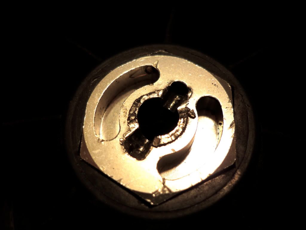 It seems to happen more on the front wheels, but the back wheels suffer from the issue also. The nuts are flanged nylon-insert lock nuts. The front 23mm hexes now seem to be damaged from driving with the wheels loose (before I noticed the problem of course). I have other hexes that I'm going to install once I get a 23mm hex wrench, so I was just keeping the old ones on until then. Doesn't seem like the hexes would cause this issue. See pics (front hexes only, rears are in perfect condition)