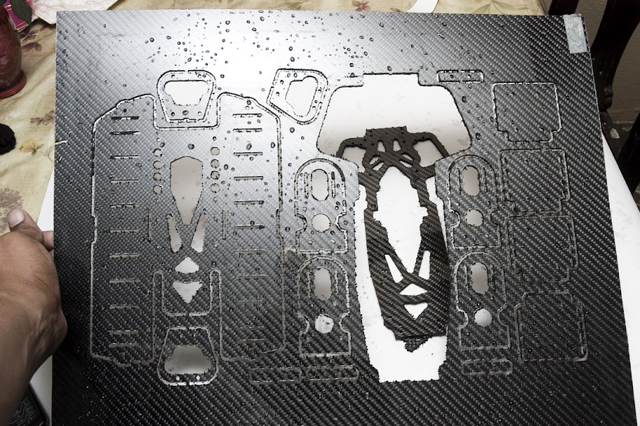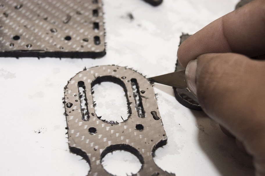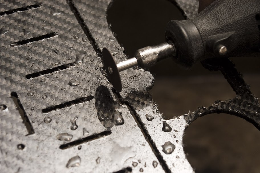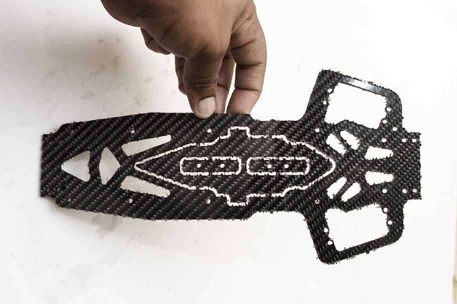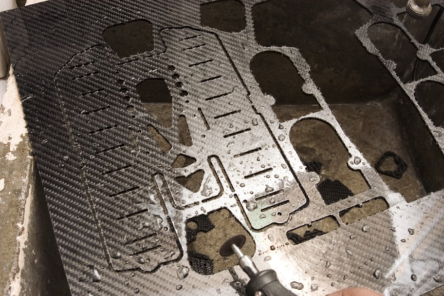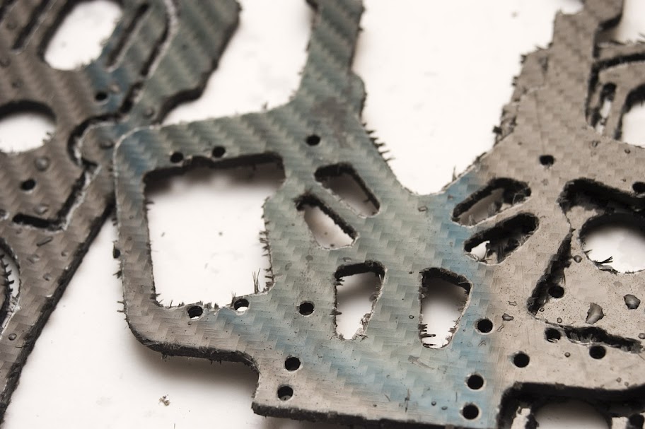 Carbon cuts... they were/are a bit rough due to the operator not setting up the router to cut through the material slowly (might have been a dull bit too)...