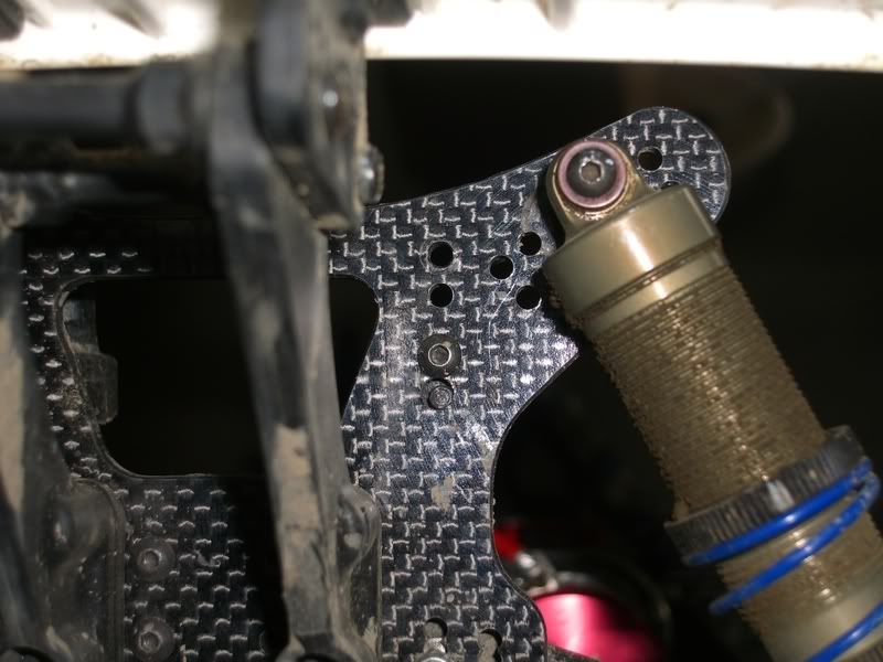 Showing the Mugen rear body mounts on the XT8'09 tower. Sorry for the dirt. Picture was taken right after a rather wet race day and it hadnt been cleaned up yet.