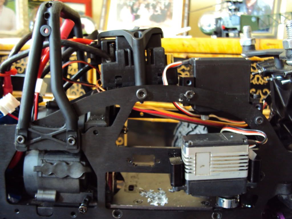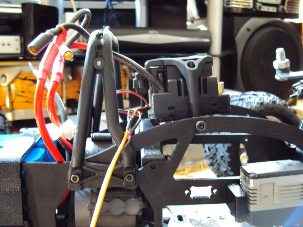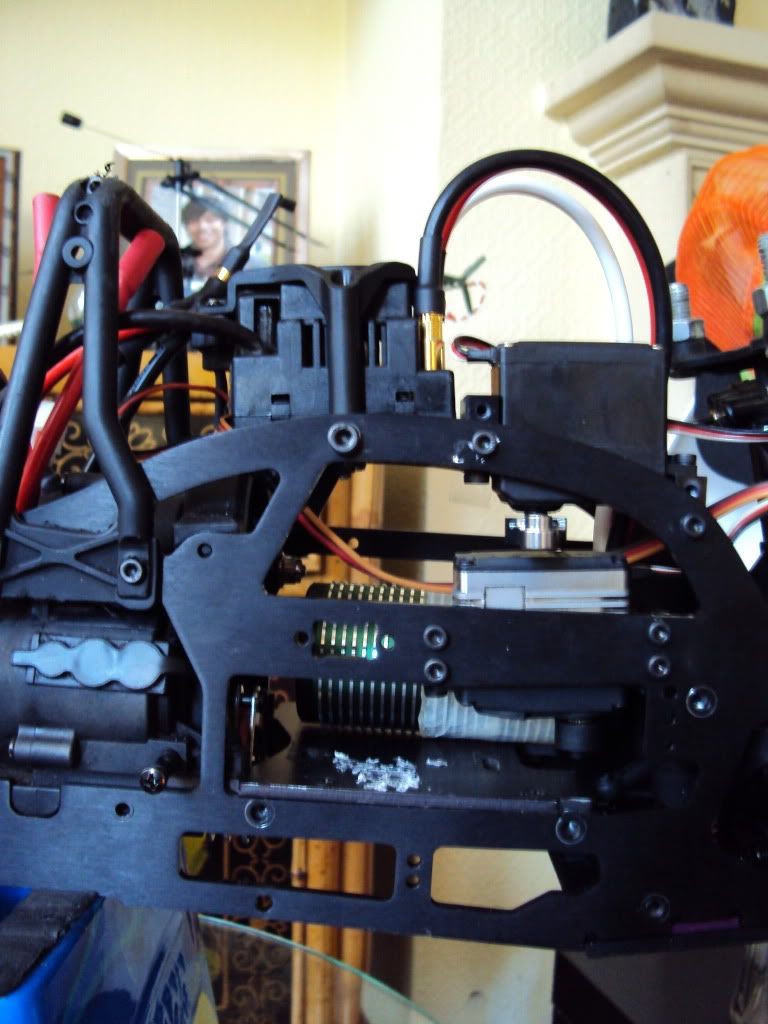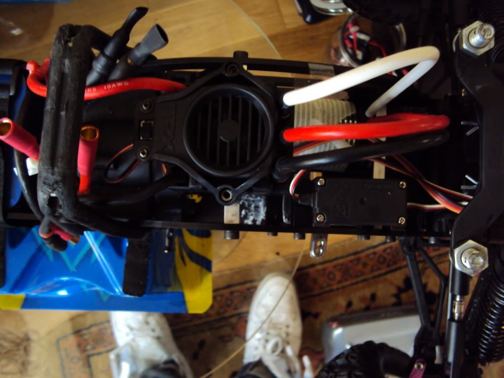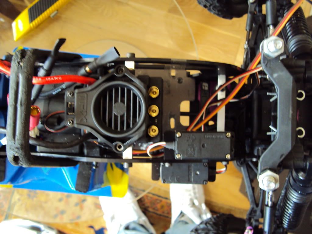 neil - Firstly i orginally had the ESC mounted above the batteries... but due to my new batteries being so large i had to move them forward....Here is a pic of where it was mounted... I cant mount it too far forward otherwise i wont be able to connect the batteries, and the second brake servo gets in the way...