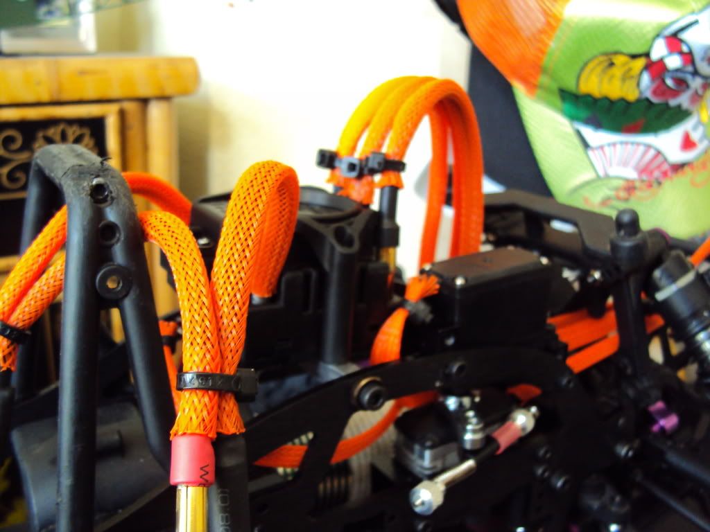 Orange Mesh Protector stuff (looks crazy and protects your wires... Cheap stuff too) From HobbyKing