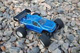 Jammin CRT.5 1/12 scale roller. Aluminum shocks, extended chassis. Brushless ready with RC-Monster mount. No electronics included. I will include a few spare parts if I can dig them up.