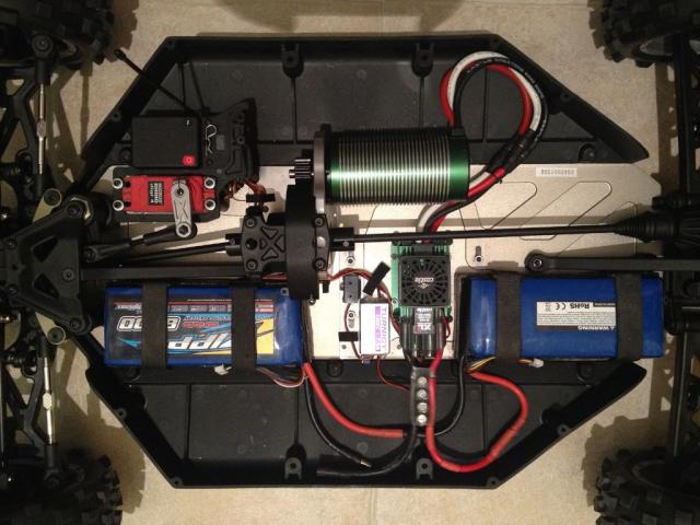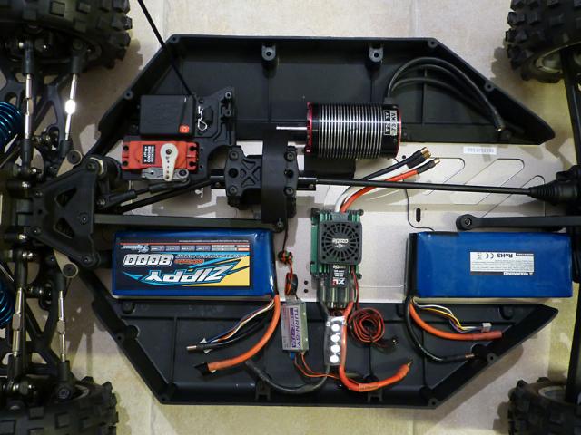 The used zippy 8000 batterys were replaced by 2 new 4s SLS 10000mAh 25C packs. Thi resulted in a big jump in power output (from 5kW peak up to 7kW peak or 55A average to 90A).