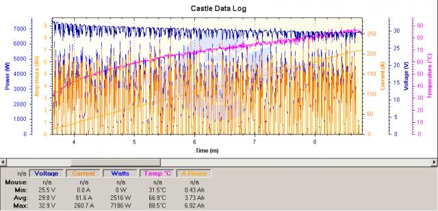 When i'm pushing the car with lots of full throttle passes on grass like in the first video posted i'm getting th following read outs from the xl2 esc