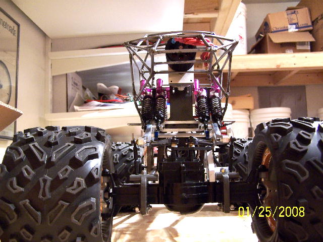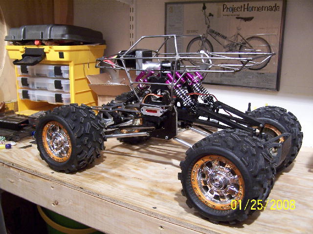 Anyway, it is running a 1512/2DF on 4S through a Mamba Max ESC (or it will be once I get it finished). It is 4WS running two JR DS7811 (403 once torque) steering servos. Every suspension and chassis part was made in my shop. I am finishing up the swaybars and related hardware over this coming week. It should be ready to run after that.