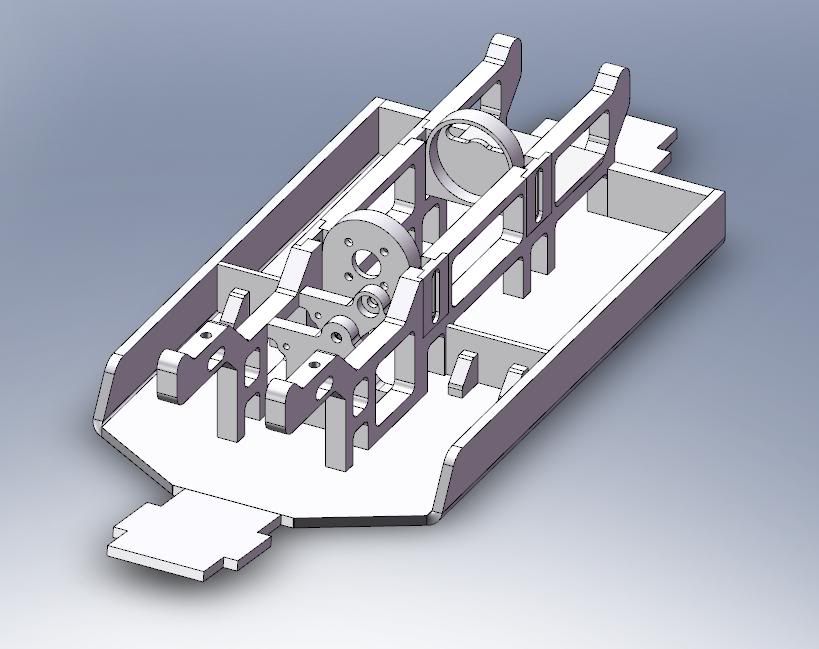I finished the basic drawings of my new design. It took way too long, probably because I changed my mind a few times.. again (this is the last one, I promise! I'm fully satisfied with this). I have to change/add a few things (front kickup being one of them), but this is the basic layout of everything. I still have to wait on a few things in the mail before I can add the radio tray, brake mounts, rollbar, and a few other things. I will also take out much of the "TVP"s once I get all of that other stuff done, to significantly lighten it all up. There's more good news: It will end up being only 10mm longer than an FLM kit with this design, and I'm sure the CoG will also be much lower. :yipi: Without further ado, here are the pics! Trimetric: http://i278.photobucket.com/albums/k...2sDrawing1.png Rear: http://i278.photobucket.com/albums/k...2sDrawing2.png Side: http://i278.photobucket.com/albums/k...2sDrawing3.png Top: http://i278.photobucket.com/albums/k...2sDrawing4.png Hope you guys like it! I know I do! :yes: |