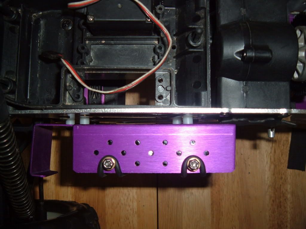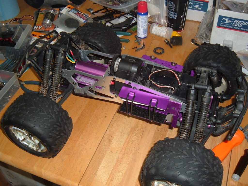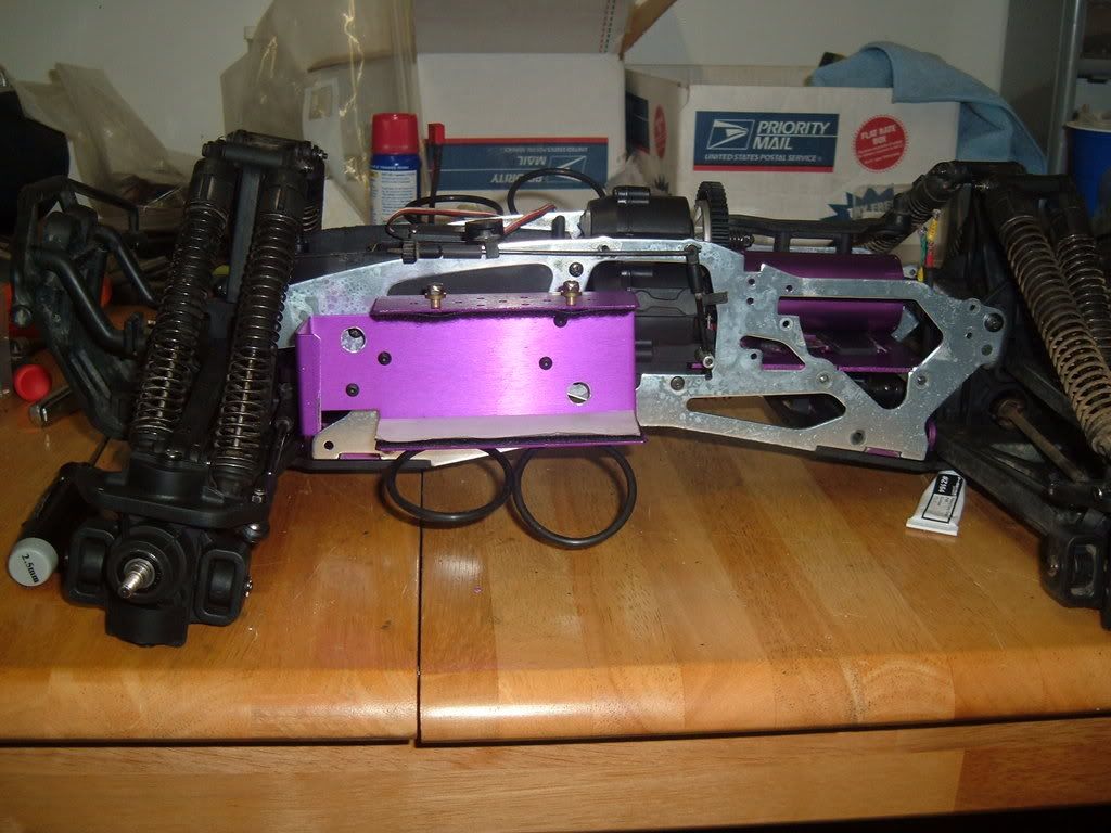 Looking at the nitro motor mount plate, it looks easy to make an electric motor mount. I will use some angle al, and use the slotted holes for the nitro motor to adjust the mesh. I have about 3/8" space between the motor and the tvp with my desired gearing, so I can gear up if needed. I will save the kershaw mount in case I do not like mine, but mine will be much lower cg. It must lower the motor about 1.5-2 inches over the kershaw mount. Wonder why no one else makes simple mounts like this? I am using the smallest spur, 47t, so maybe there would be issues with the 52t? Motor shown is a 14xl, so there is plenty of space length-wise. Battery trays are from FD, have had them for a while and they work in this application so I will use them. The spacers on the brake side are about twice as thick as I need, so I will cut them in half to bring the tray closer. I had to space that side to clear the tranny casing. I put the trays up from for weight distribution as the motor and esc will be in the back. Plus they cleared the brake linkage that way, and are up out of the way. I will make some lexan covers for the lipos so they cannot be punctured or damaged. Just need to wire it up and make the motor mount, this thing may run this weekend, or take 4 months to finish, who knows! http://i206.photobucket.com/albums/b...p/DSCF1999.jpg http://i206.photobucket.com/albums/b...p/DSCF2000.jpg http://i206.photobucket.com/albums/b...p/DSCF2001.jpg http://i206.photobucket.com/albums/b...p/DSCF2002.jpg http://i206.photobucket.com/albums/b...p/DSCF2003.jpg |