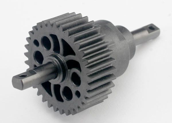 The maximizer cup uses std traxxas internals, so 2 spiders and 2 output gears. I will see if I can get my hands on a center diff kit, and try to use the gear on my adapter. I have a revo center diff, wrong number of teeth, 29 vs 33, but it should be the same size...