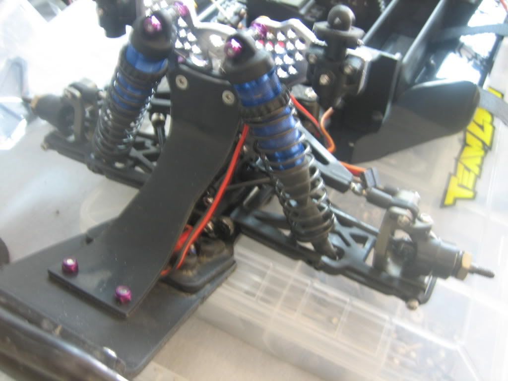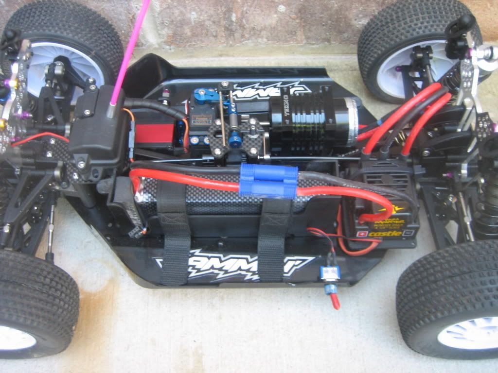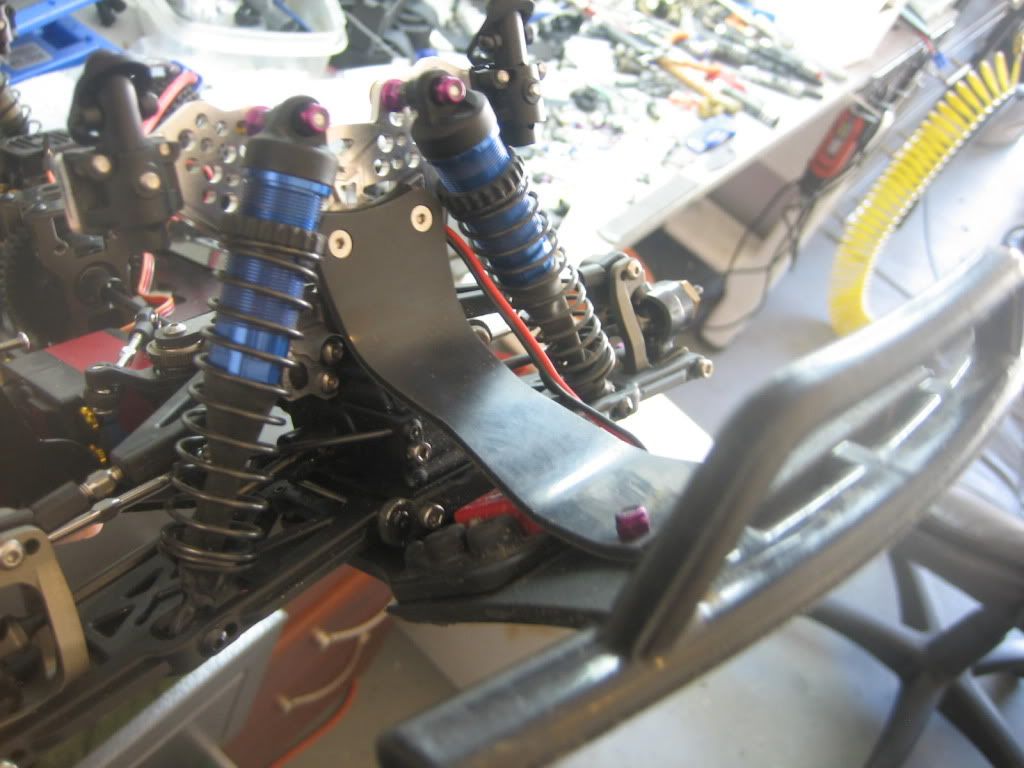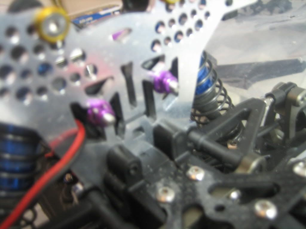 here are just a couple of quick pics of the layout. nothing is mounted up yet but i should have it finished tonight. i decided not to do the carbon parts yet. i have a TenT i am building and will be using carbon for that build. anyway, cant wait to race my jammin. the TenT rear shocks on the front are very responsive and feel great.