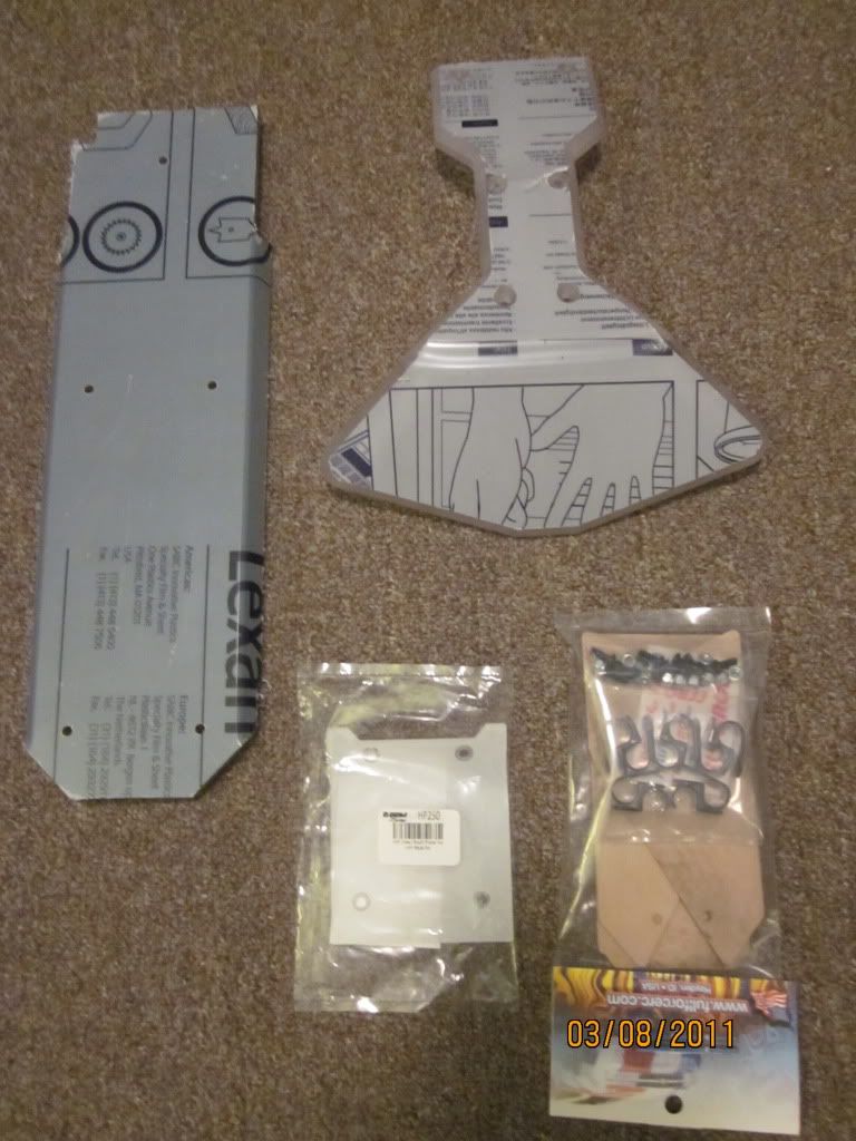 Clear Igloo front bumper/chassis brace combo, clear roof panel, atx clear chassis protector, full force rc clear windows